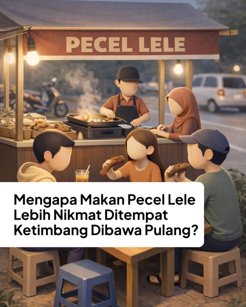 Pecel lele sering terasa lebih nikmat ketika dimakan langsung di warung dibandingkan dibawa pulang. Perbedaan ini bukan semata-mata disebabkan oleh