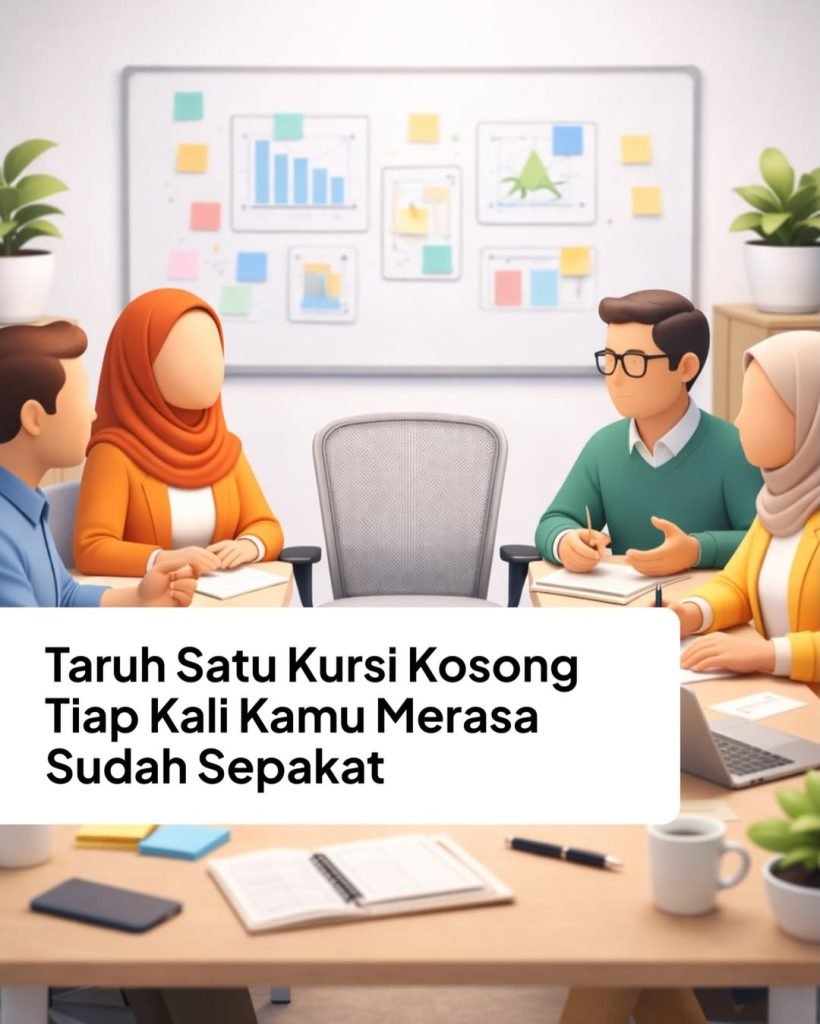 Sering kali diskusi tim terasa lancar justru karena semuanya terlalu cepat sepakat. Semua kursi terisi, semua orang bicara, dan keputusan