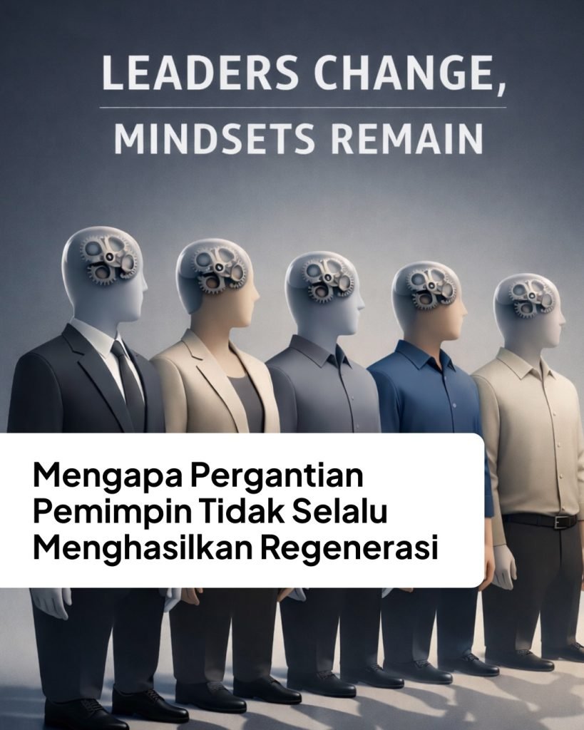 Leaders Change, Mindsets RemainMengapa Pergantian Pemimpin Tidak Selalu Menghasilkan Regenerasi Dalam banyak organisasi, pergantian kepemimpinan kerap disalahartikan sebagai regenerasi. Secara