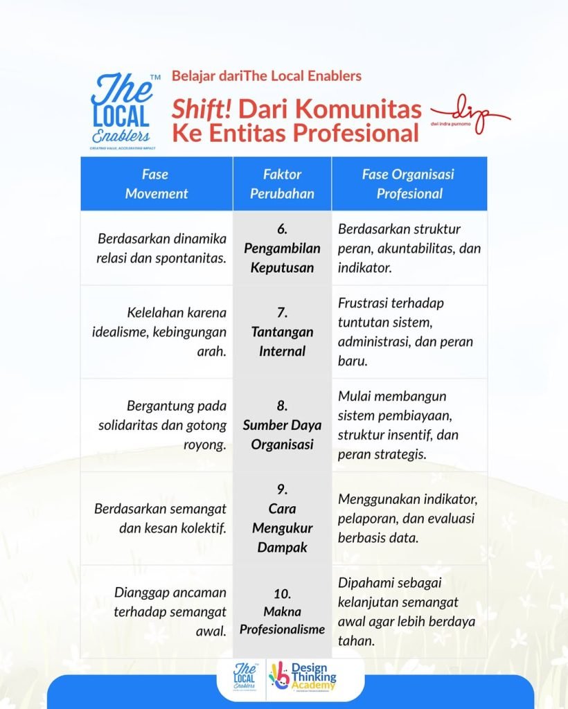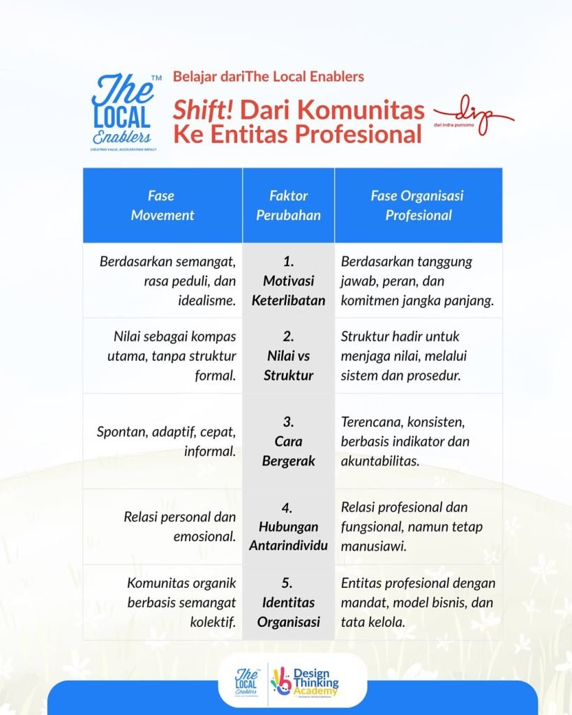 Gerakan @thelocalenablers lahir dari pilihan yang tidak populer namun kami yakini paling menentukan: menumbuhkan, bukan memanen. Sejak awal, kami tidak mengambil jalan mudah dengan merekrut talenta siap pakai, melainkan berani berinvestasi pada proses seeding manusia, fase paling sunyi sekaligus paling menentukan dalam memutus rantai kemiskinan. Di tengah ekosistem yang cenderung menghargai hasil akhir, kami memilih bekerja di hulu: membangun kapasitas berpikir, keberanian mengambil peran, dan daya tahan menghadapi realitas, karena di sanalah fondasi perubahan sesungguhnya dibentuk.