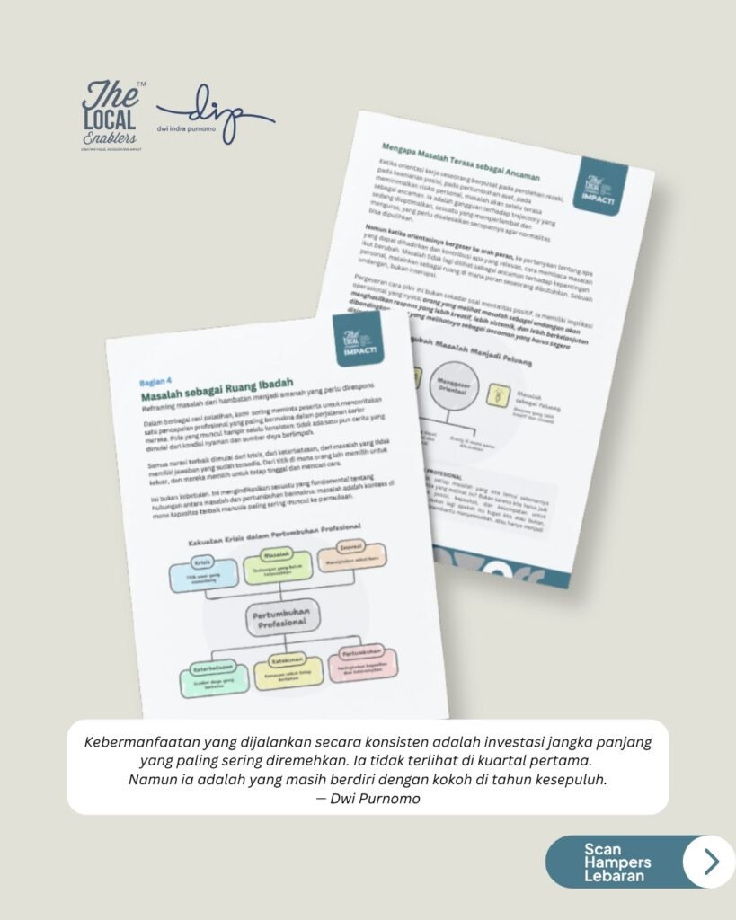 Hampir tidak ada orang yang kekurangan rezeki karena kurang bekerja keras. Yang lebih sering terjadi adalah kekurangan kejelasan tentang peran. Buku ini kami bagikan gratis di momen Idulfitri 1447 H untuk seluruh ekosistem TLE. Kalau ada satu kalimat yang membuat kamu berhenti sejenak dan mikir ulang cara kamu bekerja, tujuan buku ini sudah tercapai. Selamat Idulfitri. Taqabbalallahu minna wa minkum.