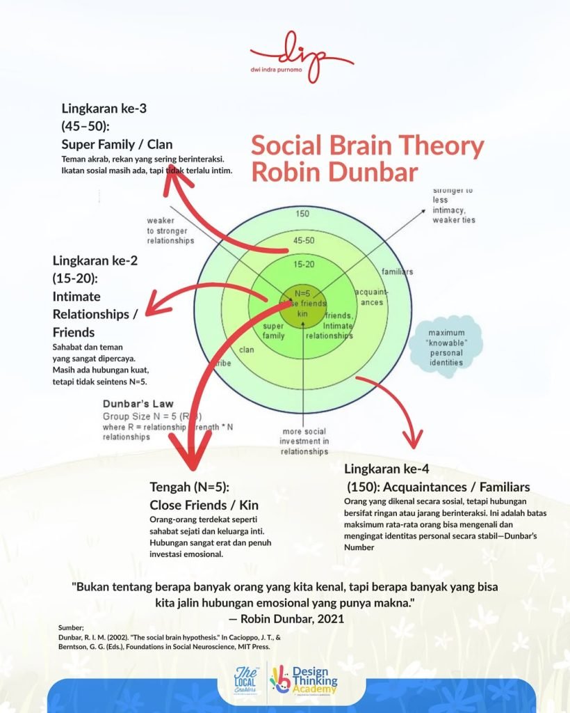 Banyak orang berpikir bahwa semakin banyak kenalan, semakin besar peluang yang dimiliki. Itu tidak salah, tapi tidak sepenuhnya tepat. Penelitian Dunbar menunjukkan bahwa otak manusia hanya bisa mengelola sekitar 150 hubungan sosial aktif dengan kualitas yang bermakna. Itu bukan soal kemampuan teknologi, tapi kapasitas mental dan emosional kita untuk benar-benar hadir dalam hubungan.