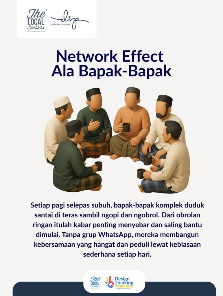 Jadi, jangan meremehkan obrolan santai itu. Di balik sarung dan cangkir kopi, ada sistem ekosistem sosial yang bekerja. Ini adalah network effect dalam bentuk yang sangat lokal dan manusiawi, bukan dibangun lewat kecanggihan teknologi, tapi lewat kehadiran rutin, saling percaya & komitmen sosial. Justru inilah jenis ekosistem yang semakin langka di tengah masyarakat yang makin individualistik & transaksional✨
