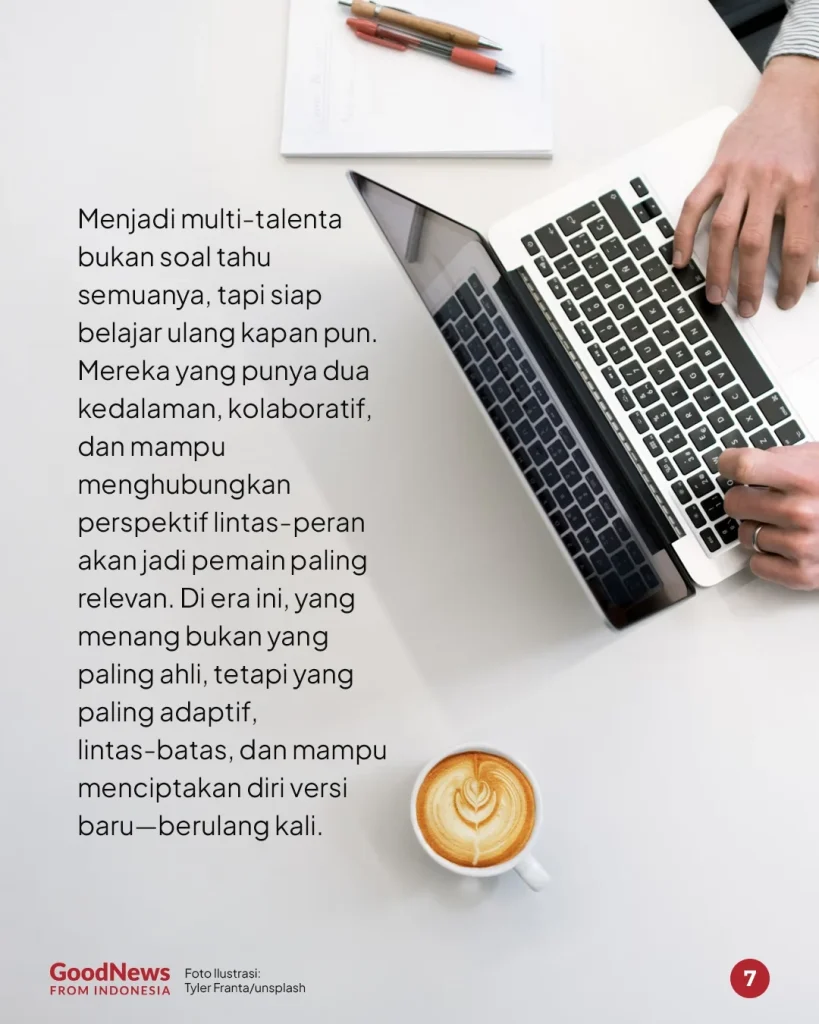 Multi-talenta menekankan pada kemampuan untuk beradaptasi, fleksibel, dan kemauan untuk terus belajar serta mengembangkan diri. Di era ini, multi-talenta menjadi pendekatan berbasis pertumbuhan terhadap keterampilan dan pengetahuan.