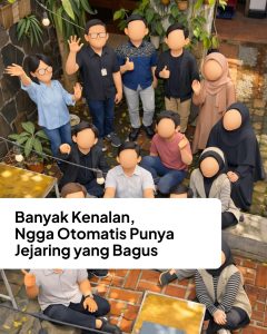Mungkin sebagian mulai lupa atas apa mimpi yang sempat tertuliskan atau pada semangat kolaborasi yang sempat dibangun. Menjadi biasa bekerja sendiri, mulai lupa melihat sekeliling, mulai terasa terbiasa mandiri ternyata juga menumbuhkan bibit‑bibit ketidakpekaan untuk melihat sekeliling bahwa ada yang tercecer. Padahal era ini adalah era kolaborasi, bukan lagi kompetisi yang lazim meninggalkan keterceceran.